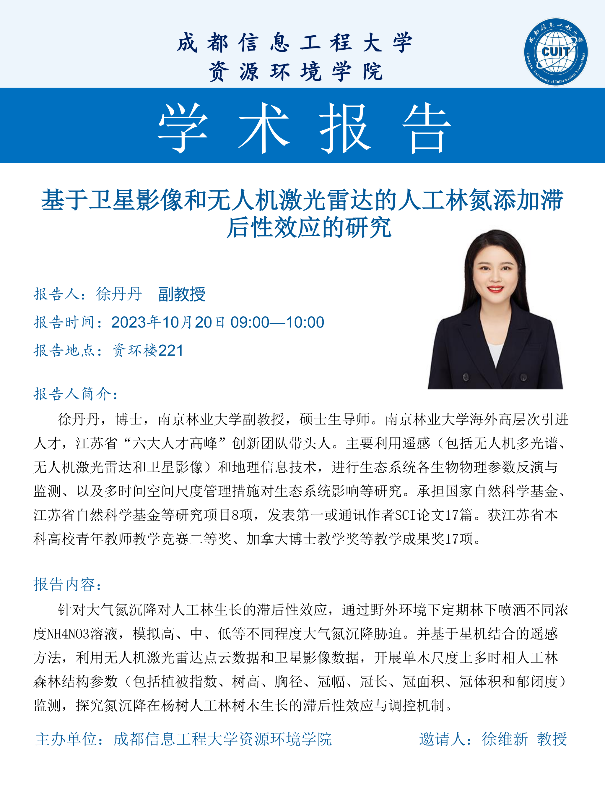 【学术报告预告】基于卫星影像和无人机激光雷达的人工林氮添加滞后性效应的研究