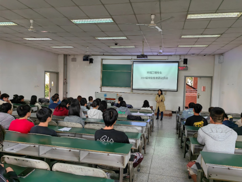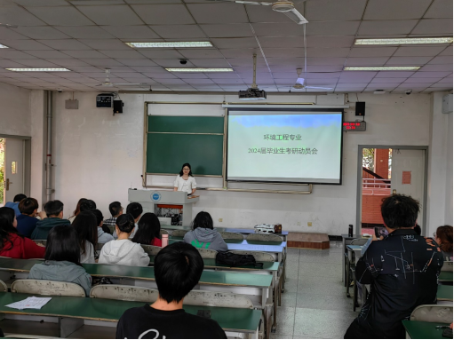 举办了环境工程专业2024届毕业生考研动员会。动员会在教学楼2104举行,会议由环境工程教研室主任郭俊元主持。资源环境学院院长徐成华、教学副院长方淑红、环境工程教研室教师、环境工程专业2019级学生等近60人参加了此次动员会。