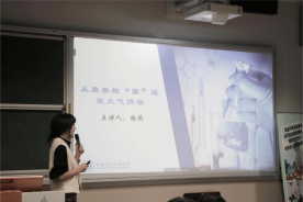 讲座二:董银娟老师讲解“核污染与人体健康”; 讲座三:杨燕老师讲解“从莫奈的‘雾’浅谈大气污染”;
