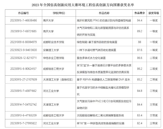 本次大赛的宗旨是“把握数字技术孕育的新发展机遇,创新融合发展途径,紧密结合国内教育教学资源,依托行业企业力量,为企业、高校、军事单位、医疗机构创造一个新模式、新业态、高水平的创新应用交流平台”。入围本次国赛的共有来自南开大学、上海交通大学、河北工业大学等众多高校的23支参赛团队,他们利用仿真应用技术,从污染物检测、生物传感器、大气污染控制等环境工程领域入手,提出了许多科研成果转化、创新解决环境问题方案和技术。
