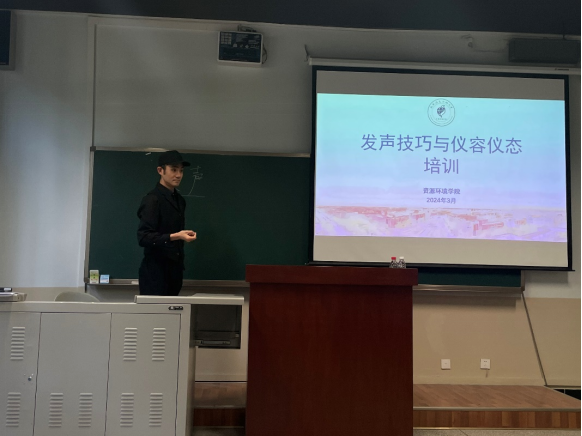 培训伊始,岑棋副教授首先抛出了“如何像电影一样吸引学生注意力的问题”强调了发音技巧在教学中的重要性。他指出,清晰、准确的发音不仅有助于教师更好地传授知识,还能增强与学生的沟通效果。接着,岑副教授通过生动的实例和详细的讲解,向青年教师传授了如何正确运用气息和发音并教授了调整气息的小练习等实用技巧。