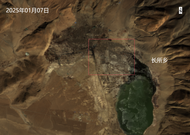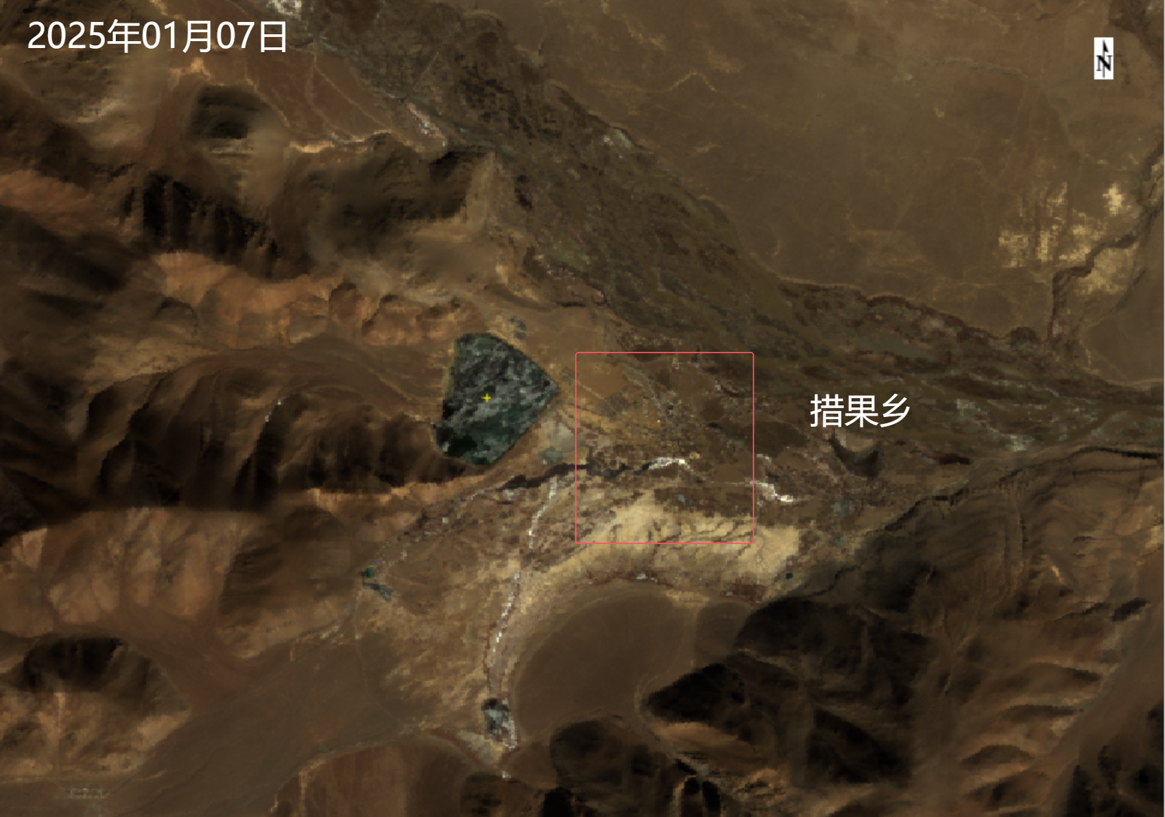 通过对受灾地区前后遥感影像的整体分析,可以看到2025年1月7日发生的地震对整个地区的地表形态产生了影响,其烈度相对较高,产生的危害可能也会更大。措果乡、长所乡及其周边山区接近震源,受到地震的直接影响,受灾情况可能最为严重。
