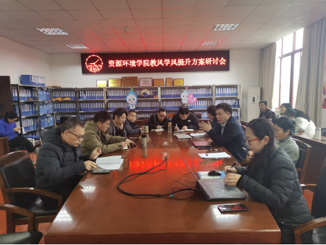 于2025年3月6日在资环楼221会议室召开教风学风提升工程工作推进会。学院党委书记李蕖、院长徐成华、副书记卞玉霞、副院长刘盛余,副院长方淑红、各系系主任、学院督导组教师、教师代表,全体辅导员、教务科科长参加了会议。会议由徐成华主持。