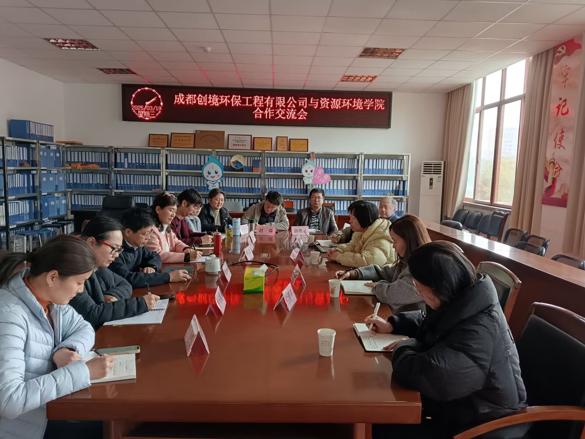 2025年3月19日下午,创境环保工程公司总经理李玲一行4人莅临学院,双方在资环楼221会议室举行了合作交流会。学院党委书记李蕖、党委副书记卞玉霞、副院长刘盛余、副院长方淑红以及环境专业教研室主任和环境方向研究所所长等参加了会议。会议由刘盛余副院长主持。