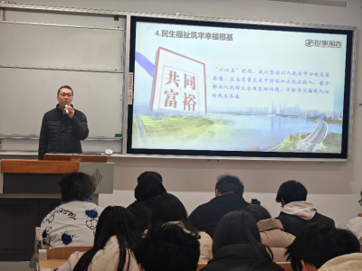 2023级环境工程专业本科生讲授主题为《决胜“十四五”,奋发向前行》的形势与政策课。