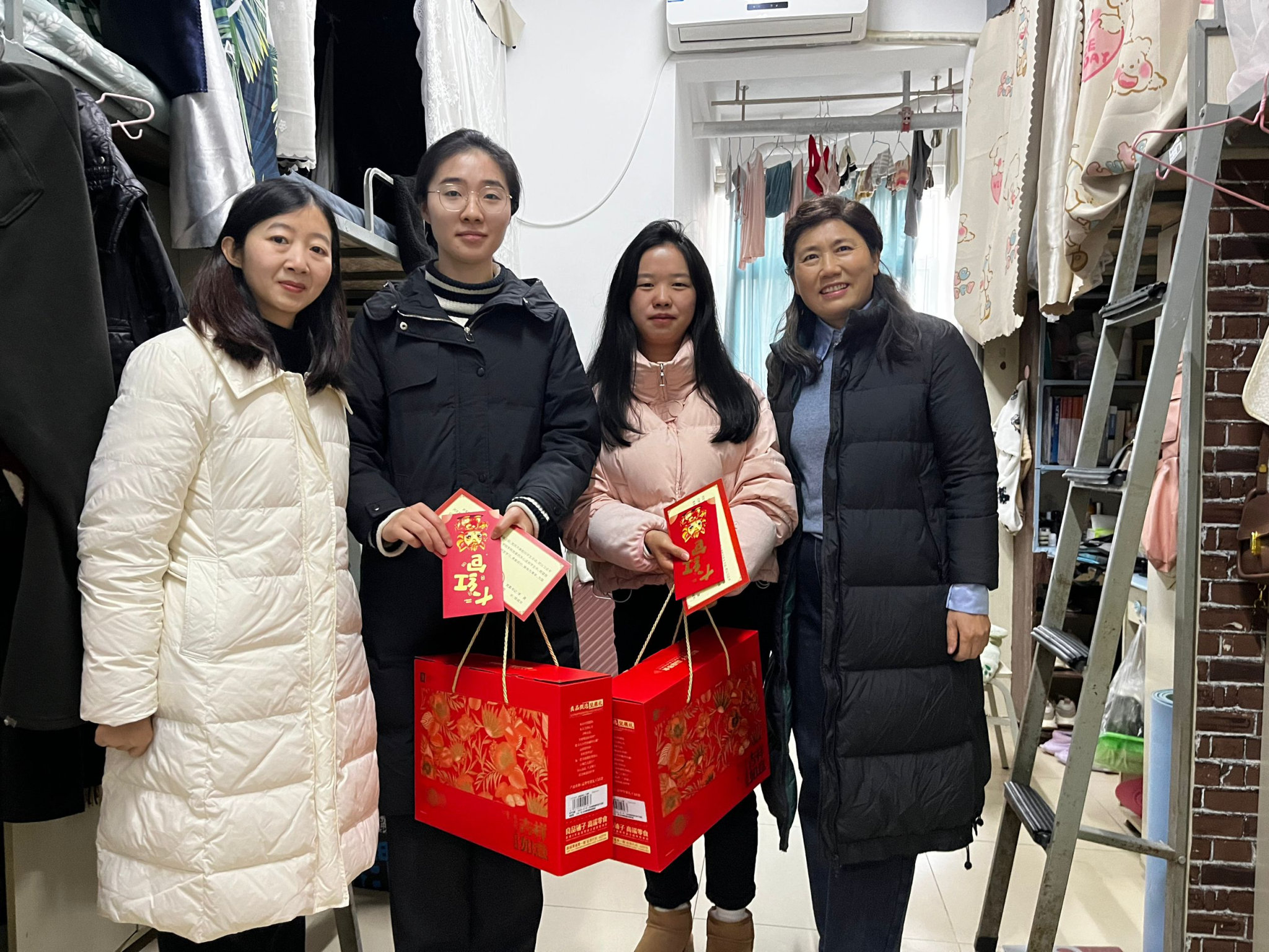 李蕖书记与他们话家常、聊近况,细心询问学生的学习、工作、家庭生活等情况,关心询问家中存在的困难和问题,鼓励大家在新的一年里振奋精神、乐观生活,努力把日子过得越来越好,并送上了学院的慰问大礼包以及现金红包慰问金。