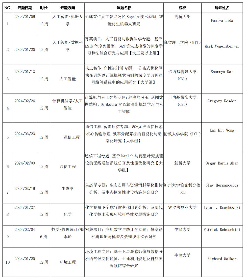 1.项目开课日期:2023年12月至2024年3月(开课时间根据所选具体项目确定,论文投递需要额外1-2个月时间);