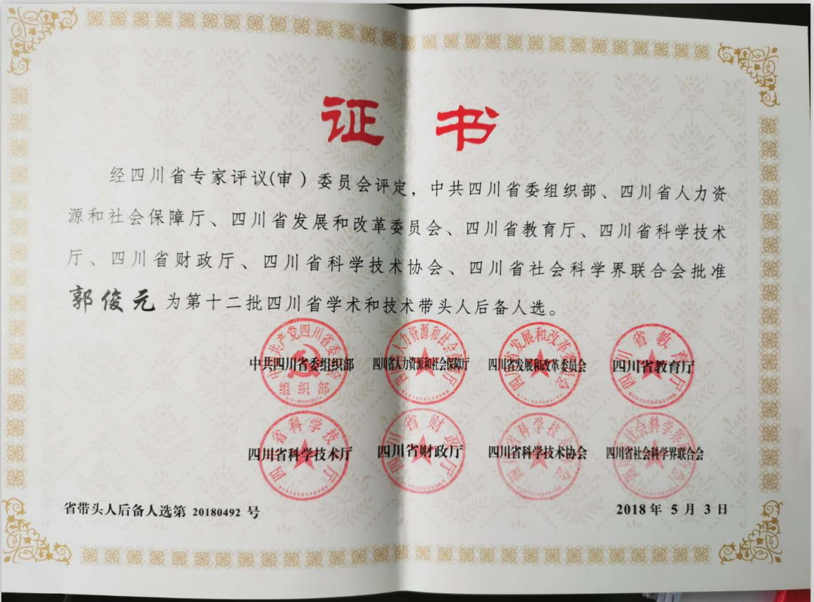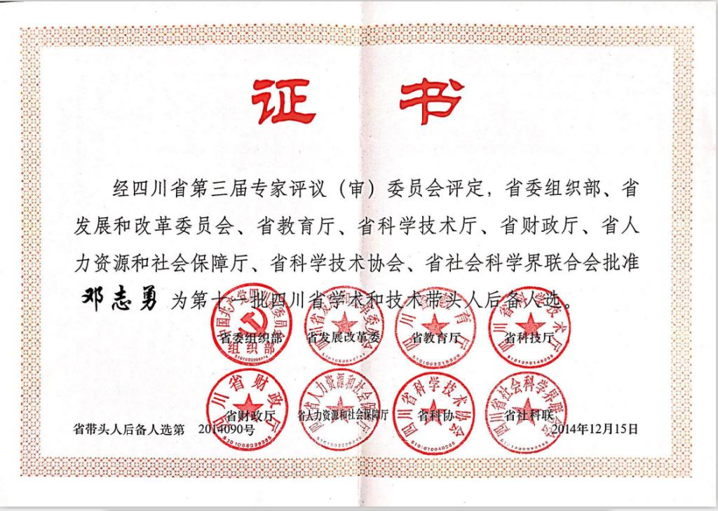 【人才称号】四川省学术和技术带头人后备人选