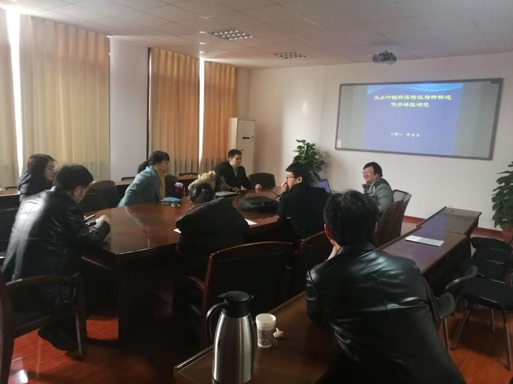 部分教师及研究生在资环楼221会议室参加了第十七期学术沙龙,本次沙龙报告人为郝云庆老师,报告题目为《五小叶槭生态学特性与种群遗传多样性研究》。在报告过程中,郝老师介绍了五小叶槭物种的发现历程,五小叶槭的地理分布环境,群落物种组成,物种多样性特征,以及种群间的遗传多样性;重点介绍了五小叶槭种群面临的威胁和生境隔离的现状。报告结束后,老师和学生们针对五小叶槭的濒危机制,分布的立地环境,近年来雅砻江上众多梯极水电站建设对它的影响等方面问题进行了深入探讨。通过这次报告,大家对珍稀濒危植物的生物多样性保护有了更深的认识。