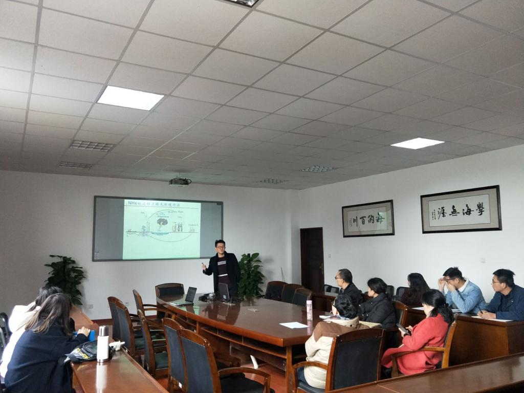 在报告过程中,赵老师深入浅出的介绍了NHx在环境中的的迁移过程及环境行为,并举几个研究案例说明NHx从农田土壤到大气,再从大气到水体界面的迁移过程与通量,让大家了解了NHx在环境介质中迁移过程及其行为;另外,还向大家介绍了一种根区施肥的方法可以减少农田NH3排放,值得将来推广。报告结束后,老师和学生纷纷和赵老师在农田NH3排放的监测方法等方面问题进行了探讨。通过这次报告,大家对NHx在环境中的迁移过程和环境行为有了新的认识。