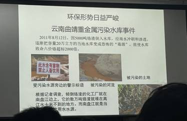 羊教授先就一些基本环境知识与学生进行了交流互动,再向学生讲解了相关法律知识。接着,他通过理论联系案例的方式,运用生活的案例和幽默风趣的语言为学生讲了以往关于环境违法犯罪的状况、以及重点介绍了环境工作者应该如何遵纪守法、建设美丽和谐自然环境。