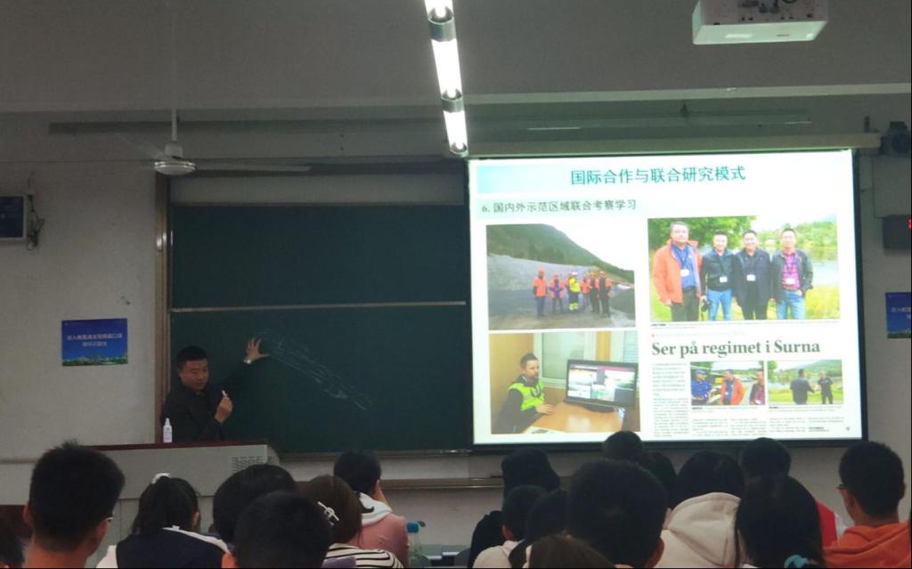 老师从四川省小流域精细化管理模式及关键技术探索的研究背景、研究内容与技术路线、国际合作与联合研究模式、主要研究成果及其应用四个方面由浅入深地进行讲解,老师简单易懂、幽默风趣的讲解,使在场学生受益匪浅,现场掌声不断。