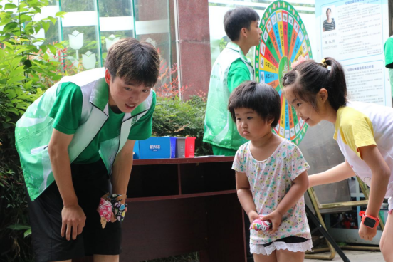 小朋友参与垃圾分类丢沙包小游戏