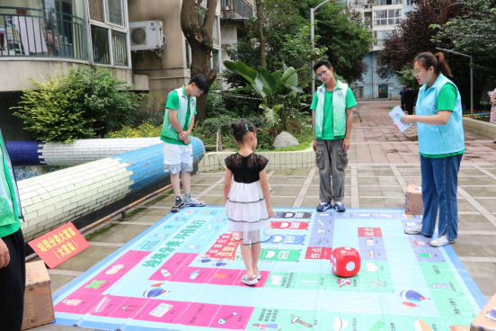 小朋友参与垃圾分类大富翁小游戏