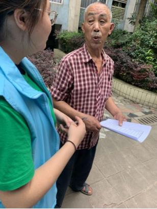 旭晴小分队前往双新路社区进行走访并通过让居民填写调查问卷的方式对社区居民关于生态文明建设和治理污染方面的了解程度进行调查。