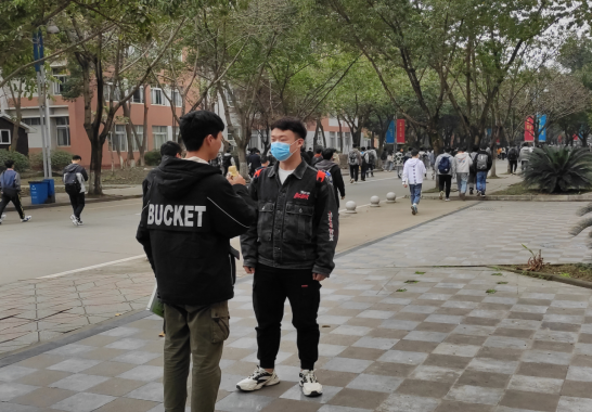 督导员正在劝阻同学