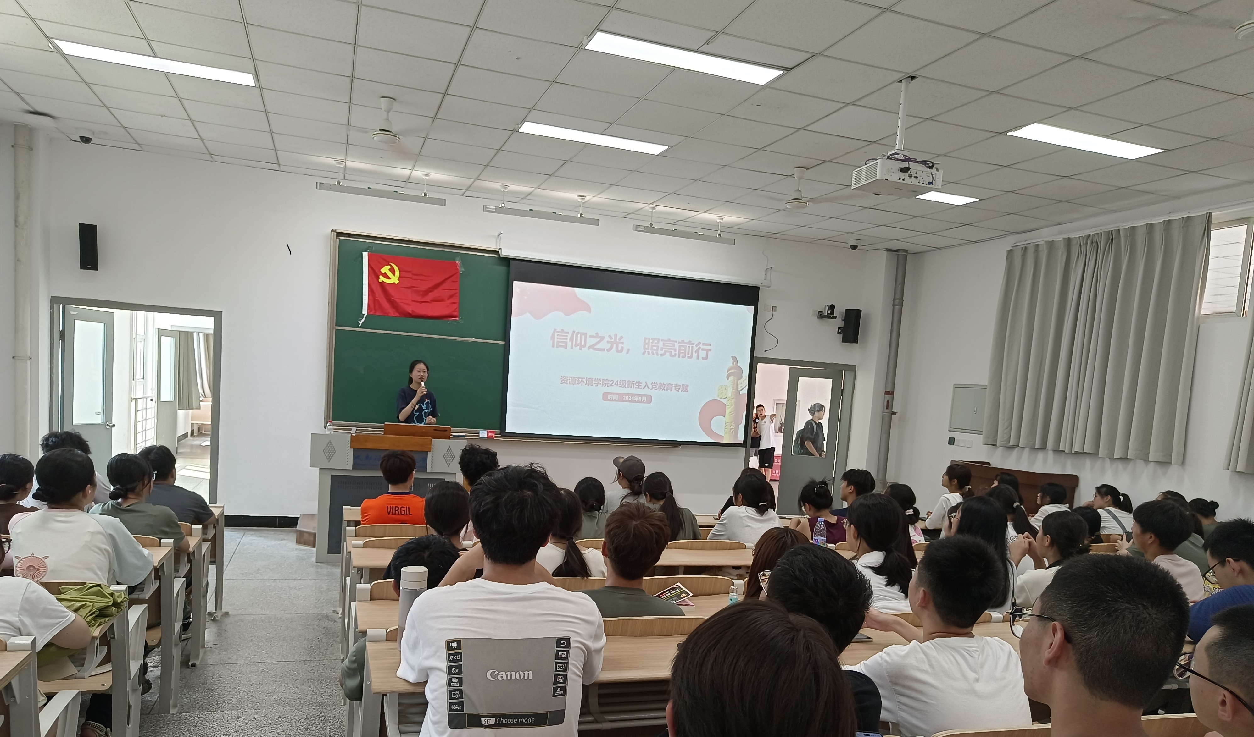 于2024年9月3日下午在2301、2302教室开展“信仰之光,照亮前行”入党教育专题讲座。会议由环境党支部书记江慧主讲。