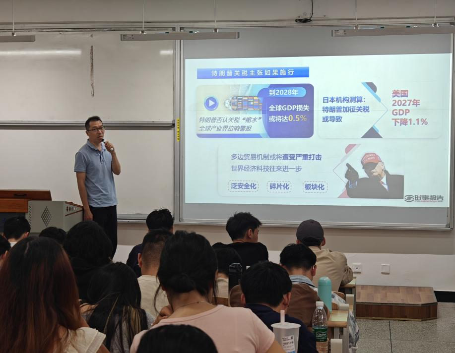 熊建紧密围绕当前中美关系的发展形势,深入剖析了新时代中美关系所面临的诸多机遇与挑战。他从“美国对华认知出现严重偏差”这一现象出发,细致地分析了过去几年中美关系经历波折的根源所在,解读了特朗普执政对中美关系的影响,阐述了破局之道。他强调,习近平总书记提出的“相互尊重、和平共处、合作共赢”三原则,是新时代处理中美关系的根本遵循,既是历史经验的总结,也为未来双方的良性互动指明了方向。他鼓励同学们要坚持胸怀天下,将个人成长与国家需要紧密结合,通过勤奋学习,努力成长为能够肩负民族复兴重任的时代新人,勇担历史使命,为实现中华民族伟大复兴的中国梦贡献青春力量。