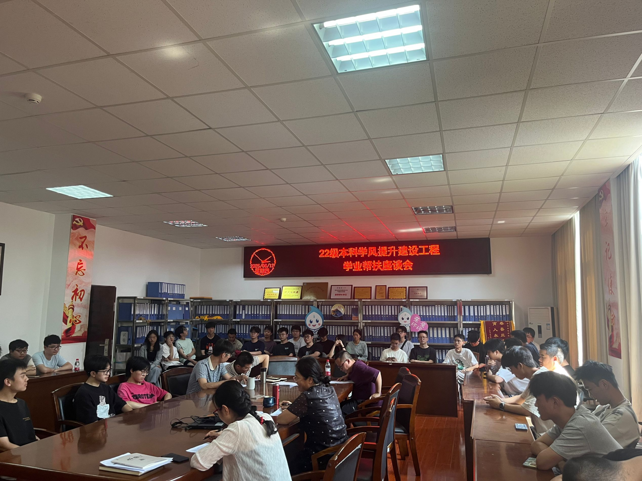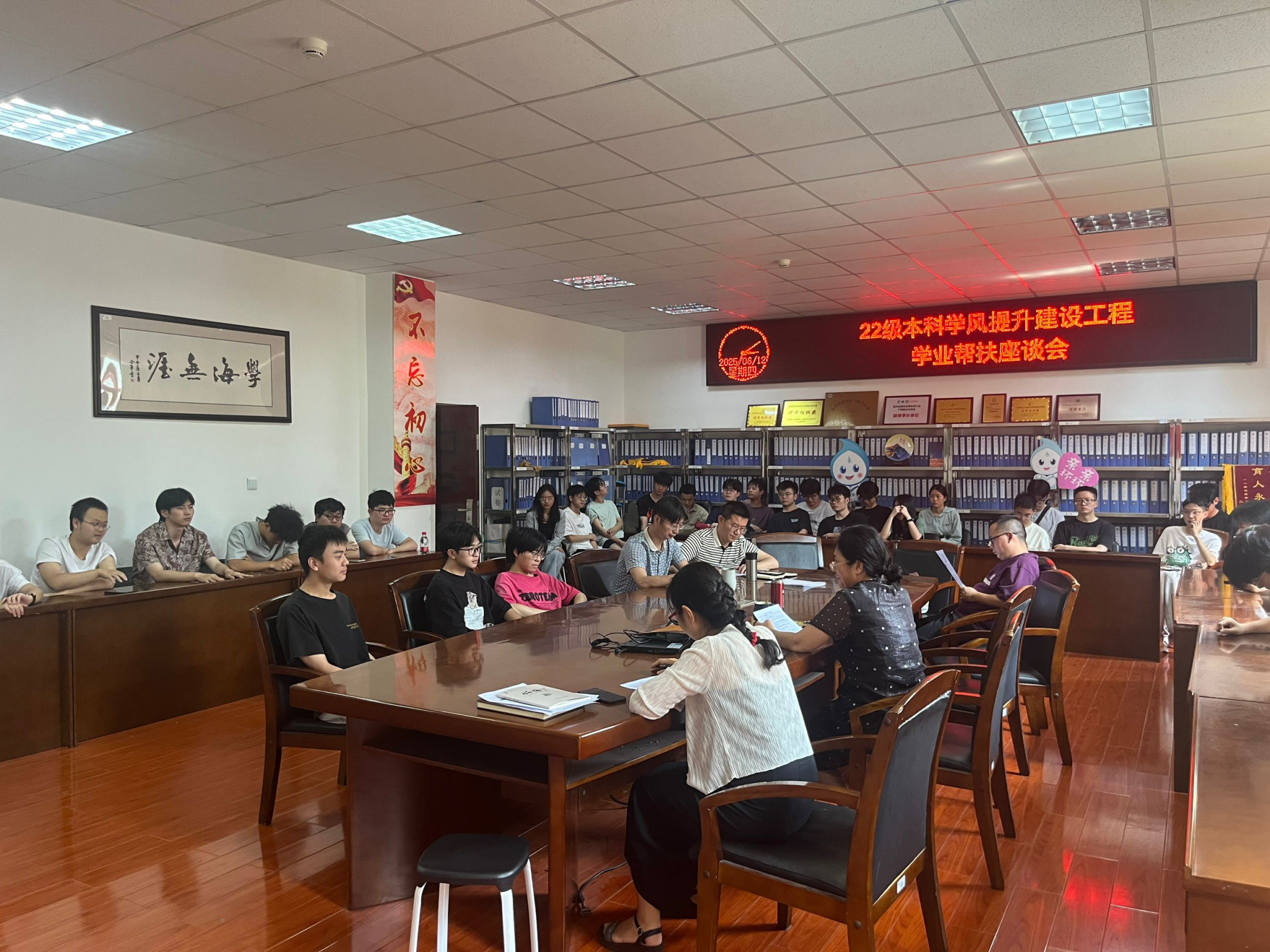 于6月12日下午3:00在资环楼221会议室召开22级本科学风提升建设工程学业帮扶座谈会。学院党委书记李蕖、副书记卞玉霞、副院长方淑红、辅导员江慧,各教研室主任及2022级挂科学生参加,通过问题剖析与定向指导,助力学生提升学业水平。