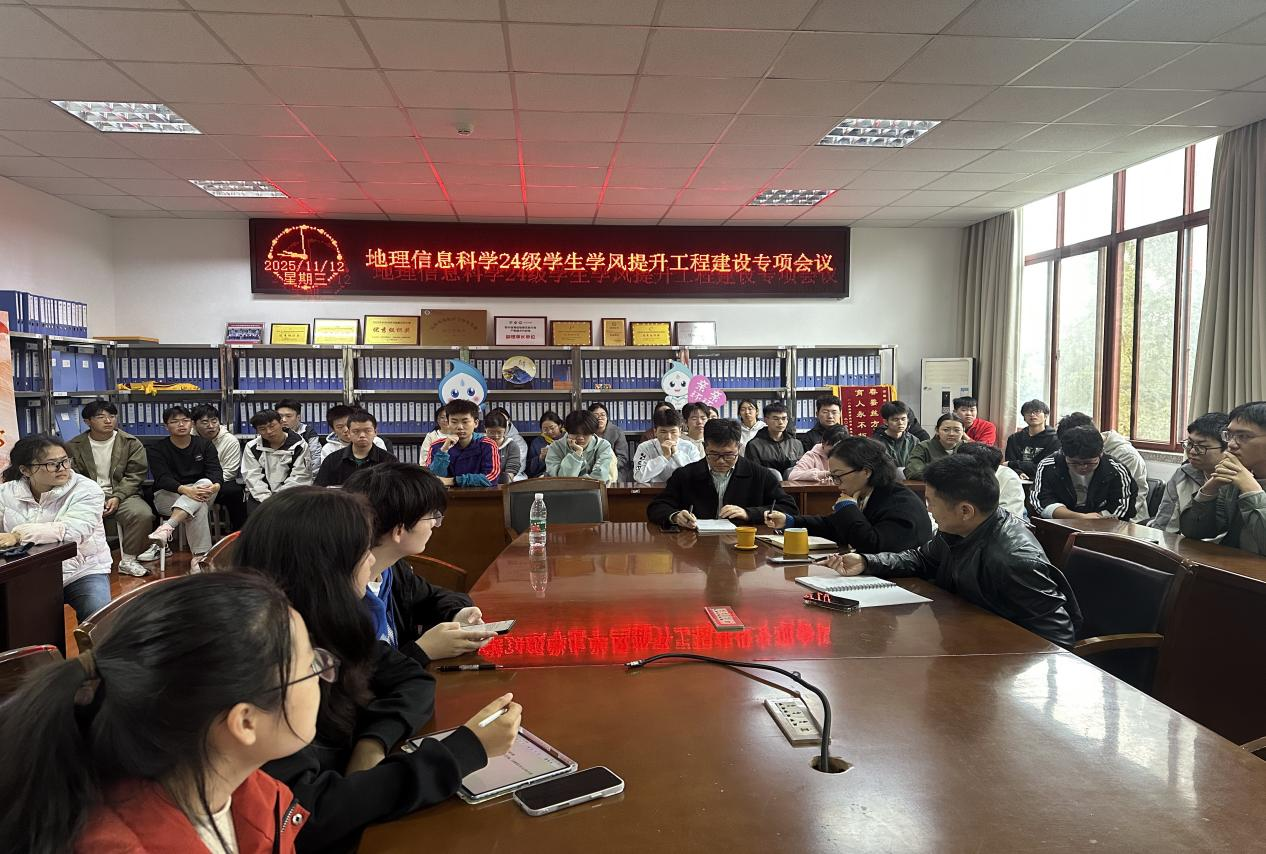 为了进一步增强学生的学习积极性,营造良好的学习氛围,11月12日上午9:30在资环楼221会议室召开了地理信息科学24级学风提升工程专题会议。教研室主任褚永彬、专任教师冯文兰、喻亮,辅导员欧美娅以及24级地理信息科学全体学生参加了会议。会议由辅导员欧美娅主持。