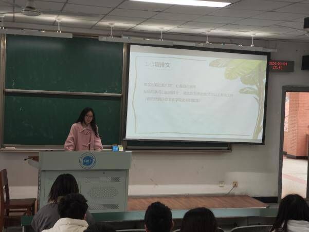 会议主要分为三个流程。首先由心晴驿站宣传部部长陈丹云为23级心理委员介绍了本学期的心理健康宣传工作。各班心理委员需要撰写心理健康相关的文章,发布到学院心理健康微信公众号中,帮助更多同学了解有关心理健康的知识,保持积极的学习态度。此外,各班心理委员需开展一次心理健康主题活动,加强同学之间的交流,营造良好班级氛围。第二,活动部部长钟雨欣介绍了本学期即将开展的心理健康主题活动。让心理委员做好宣传工作,鼓励同学们积极参加。包括“3.25善爱我”短诗图文活动,号召同学们用图片和文字的形式分享内心想法。4月将开展心理委员个人视频的评选,钟雨欣分享了自己以往的参赛经验。“5.25我爱我”则是给同学们提供平台写下自己的烦恼并相互留言,为同学们提供朋辈心理支持,缓解内心的压力。最后,由欧美娅老师对本次会议进行总结,指出心理委员工作中存在的问题,强调心理委员应注意提高工作主动性和积极性,开展形式丰富的心理主题活动。同时鼓励心理委员积极参与今年下半年的“全国百佳心理委员”评选,及时总结并形成可视化材料,为比赛做好充足的准备。