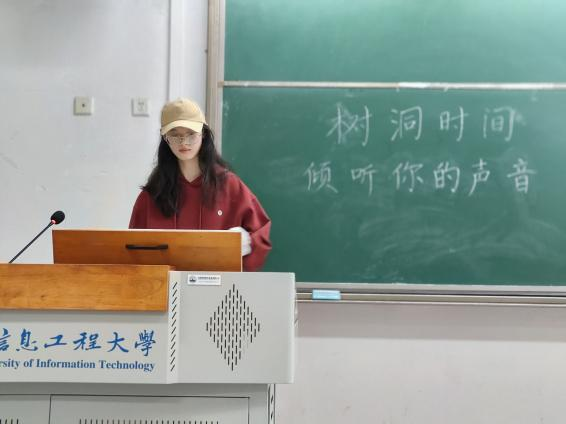 承办的“树洞时间,倾听你的声音”心理健康活动在第一教学楼H1301开展。本次活动旨在为同学们提供一个倾诉心声、释放压力、摆脱烦恼、绿化心情的平台,让每一位同学都可以吐露心事,培养大学生乐观向上的积极心理品质,树立正确的“三观”。