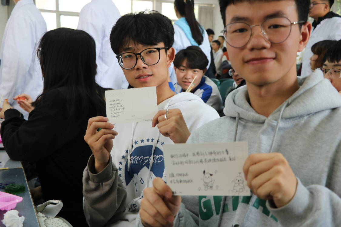 肥皂制作完成后,学校心理健康中心李嘉雯老师带领同学们进行心理放松训练,通过音乐法带领大家探索心灵世界,帮助同学们抒发内心的情感和对生活的感悟。同学们分享了在制作肥皂过程中的体验与感受,并互相赠送了祝福卡片,展现出少女漫画