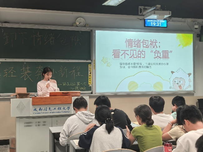 10月举办了“卸下情绪包袱,新装奔赴前程”新生心理主题班会活动。