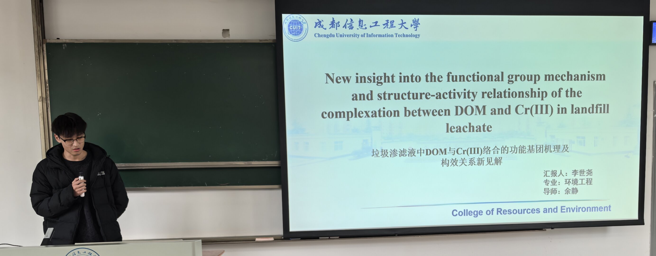李世尧分享了《垃圾渗滤液中的DOM与Cr(Ⅲ)络合的功能基团机理及构效关系新见解》,深入探讨了垃圾渗滤液中DOM与Cr(Ⅲ)的络合机理,为垃圾渗滤液的处理和资源化利用提供了理论依据。