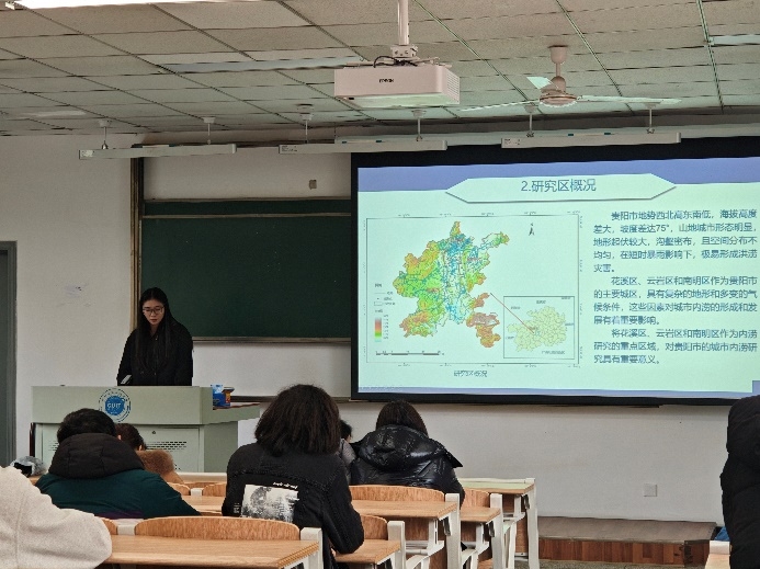 成功举办研究生一二年级下学期第二次学术交流活动。本次活动在航空港校区2201教室举行,吸引了190余名师生参与,谭显东、郭俊元、郭旭晶、信欣、张雪乔、汪嘉杨、刘洁、仙巍、冯文兰、陈雯婧等多位学院教师莅临指导。活动聚焦前沿科研议题,五位2023级研究生围绕环境遥感、土壤水文、城市内涝等方向展开学术分享,现场互动热烈,学术氛围浓厚。