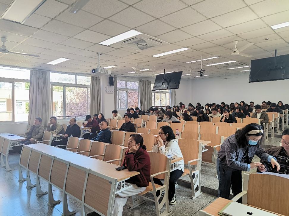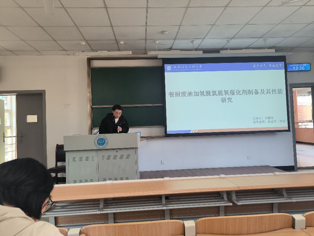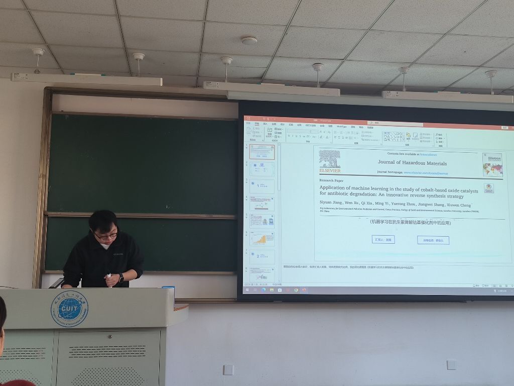 研究生一二年级2025年春季学期第三次学术交流活动在航空港校区2201教室顺利举行。本次活动吸引了多名师生参与,谭显东、郭俊元、郭旭晶、信欣、张雪乔、汪嘉杨、刘洁、仙巍、冯文兰、陈雯婧等教师莅临指导。四位2023级研究生围绕催化材料开发、机器学习应用、土壤改良技术等前沿领域展开学术分享,现场讨论热烈,学术氛围浓厚。